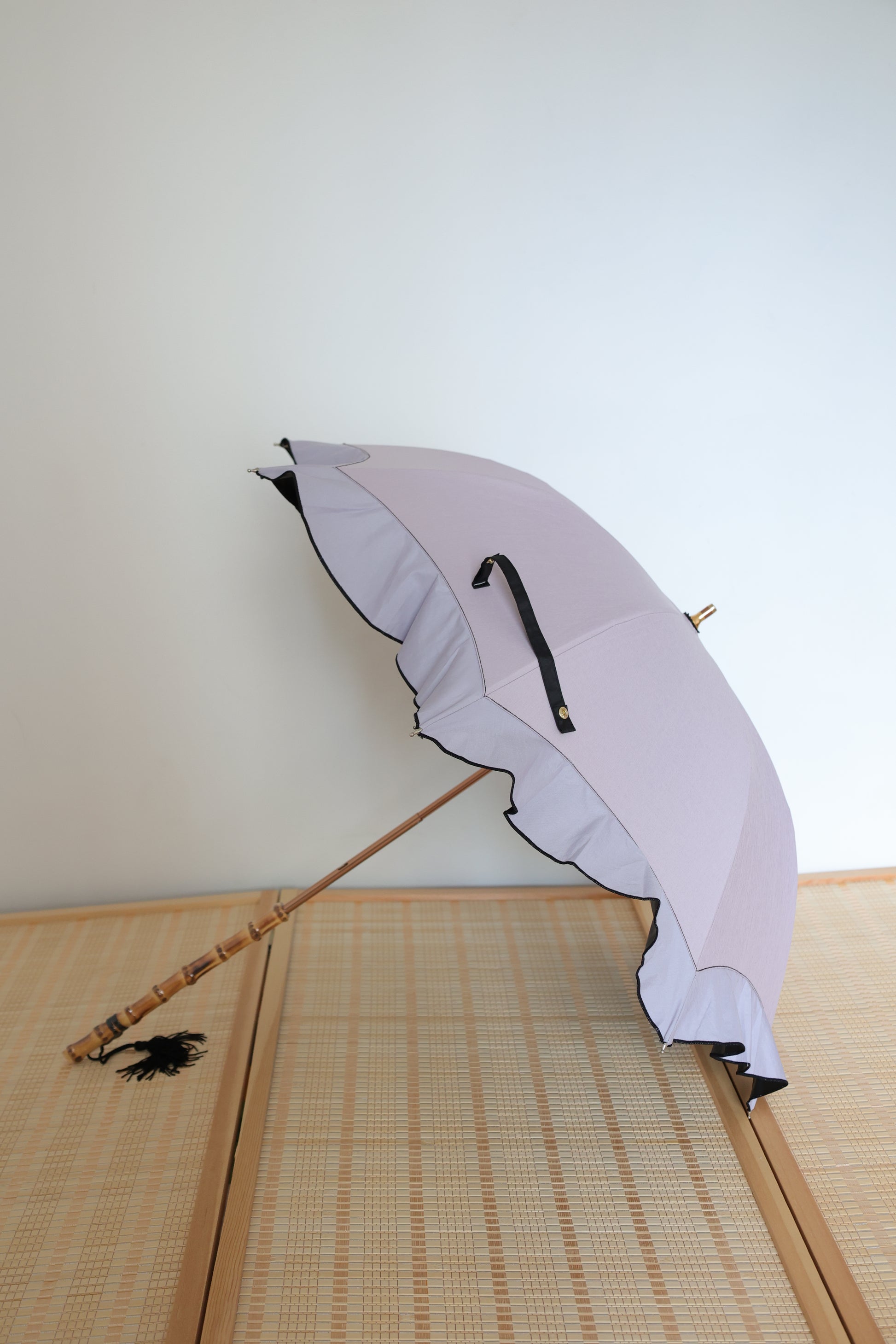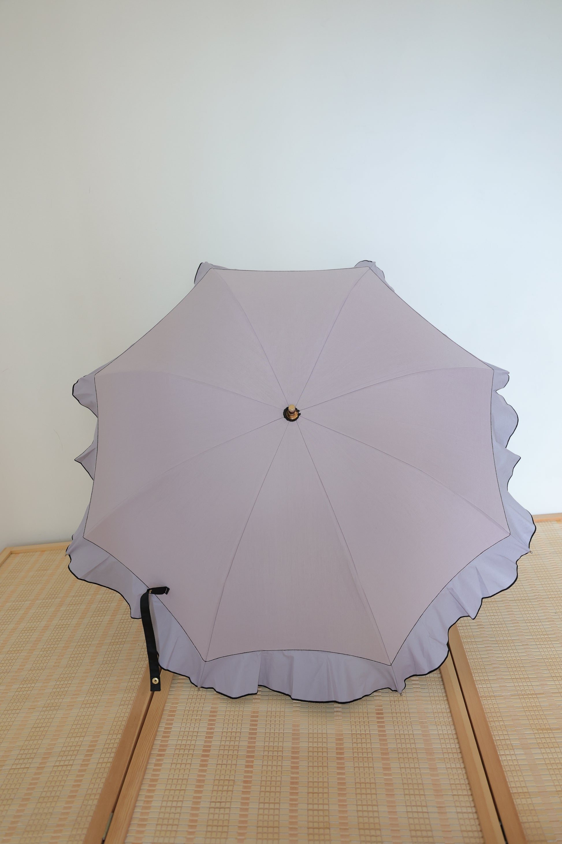 Japanese umbrella Vinyl sunscreen uv coating anti-ultraviolet taro purple lotus leaf lace Bamboo handle Umbrella diameter 85cm日式晴雨傘-香芋紫荷葉邊黑膠竹長柄85cm